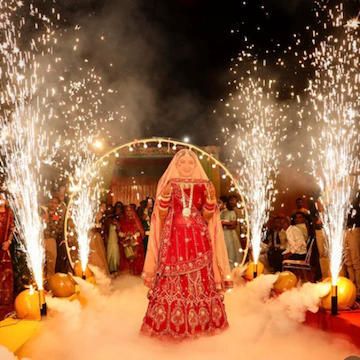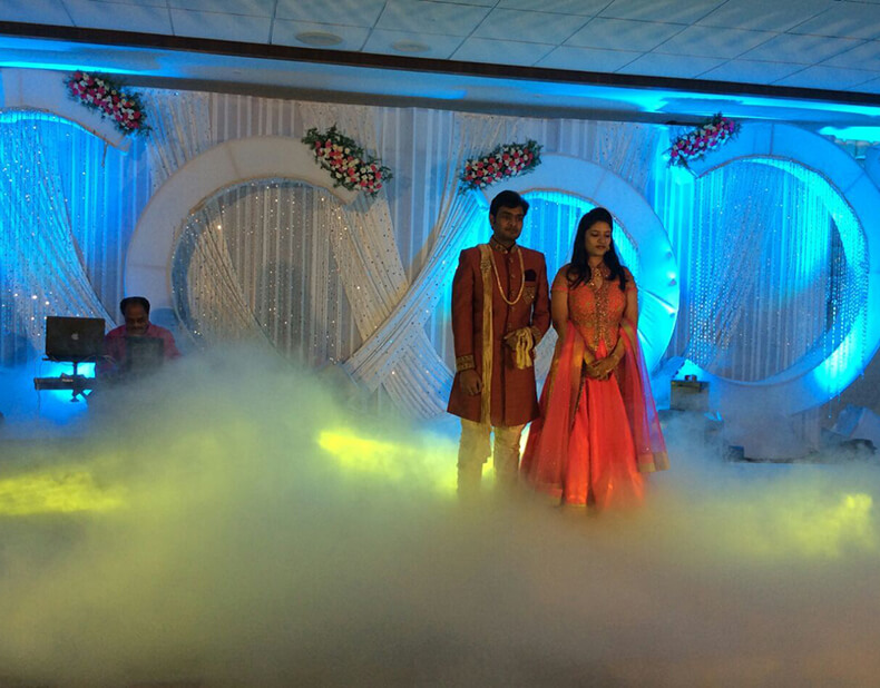 Call NowA dreamy fog entry using safe fog machines that create a cloud-like effect on the stage or pathway, giving a cinematic and royal feel to wedding entries.